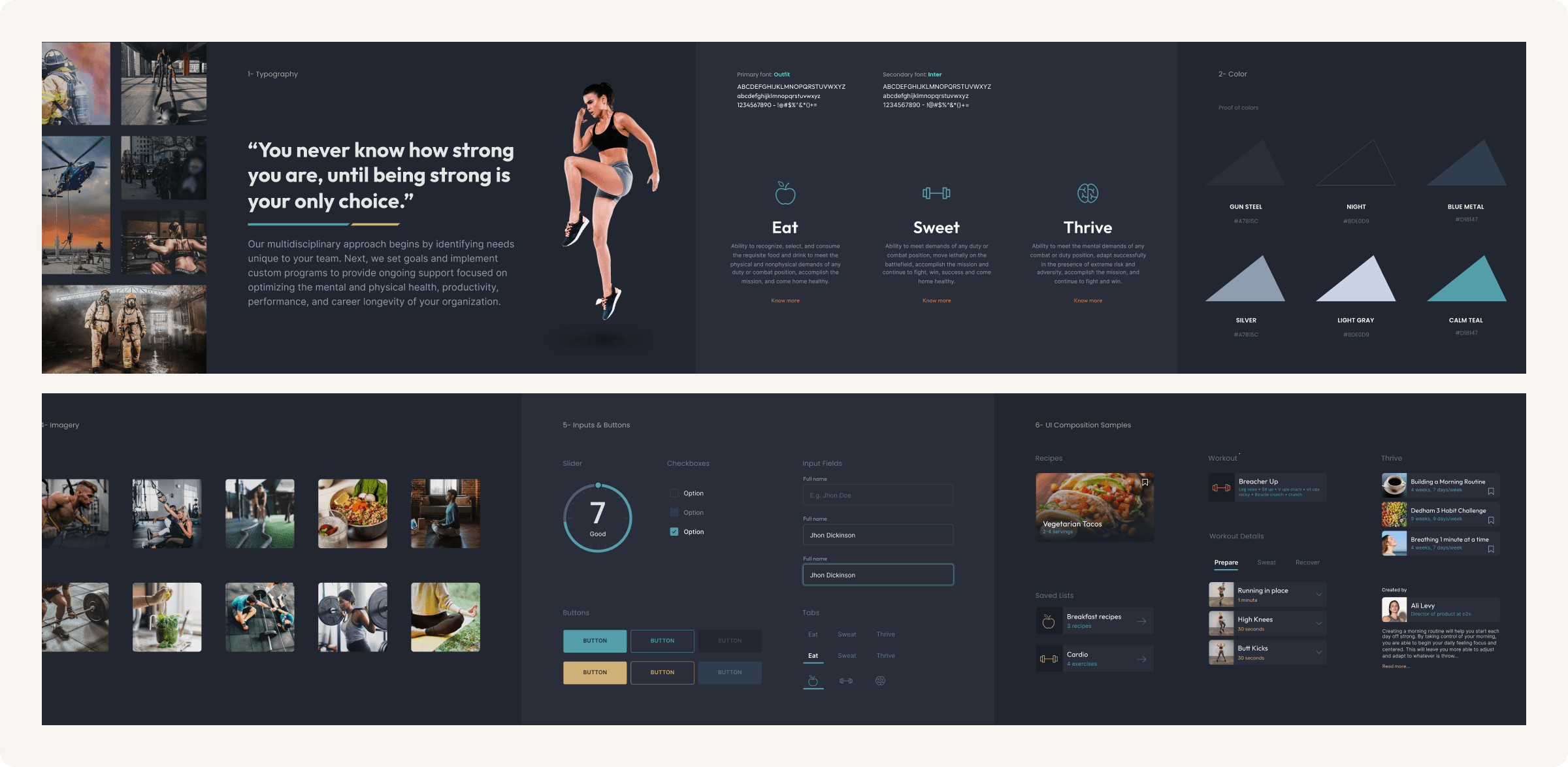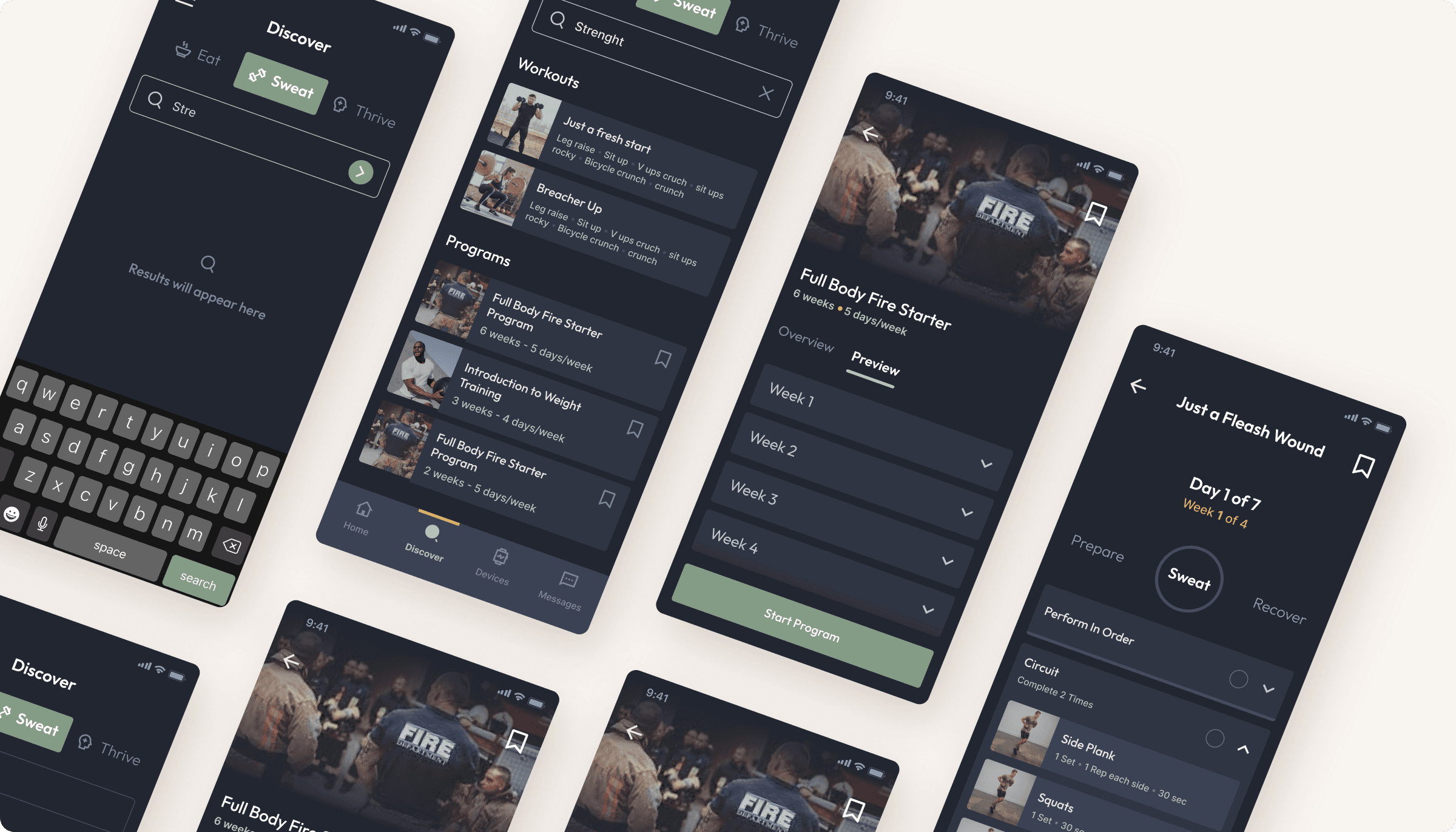At its core, the app focuses on three pillars. Eat helps users build a strong foundation of nutritional knowledge to improve overall health and wellness. Sweat delivers strength and conditioning programs that increase physical performance and readiness. Thrive provides mindfulness and stress management programs to support mental performance and resilience.