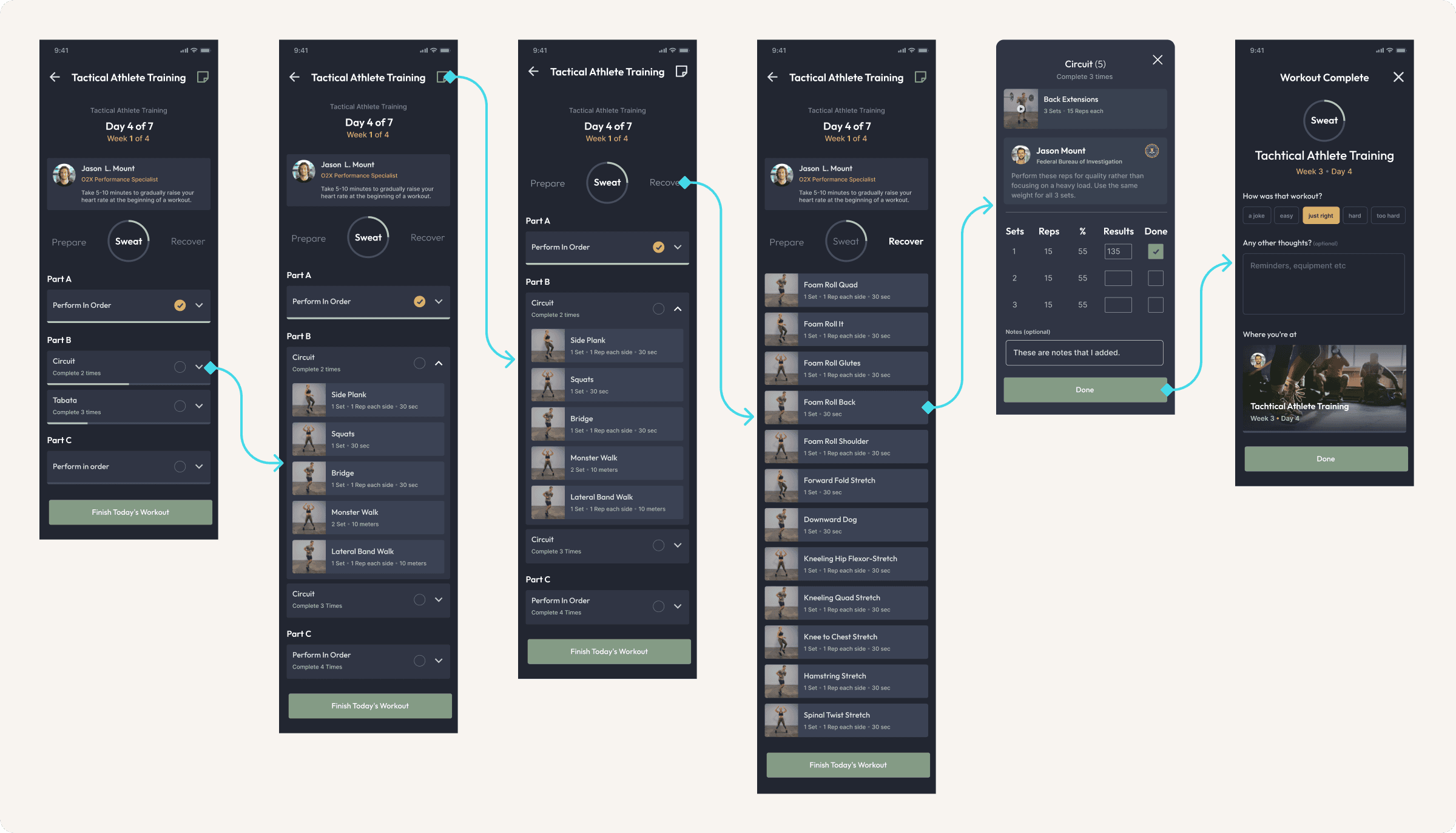 With the updated app requirements defined, along with a clear understanding of coach and athlete pain points and insights from the UX audit, we moved into the exploration phase. At this stage, we began translating research findings into early wireframes and user flows, focusing on simplifying key journeys, clarifying information hierarchy, and addressing the most critical usability issues. These initial concepts allowed us to quickly validate ideas, align with stakeholders, and set a strong foundation.