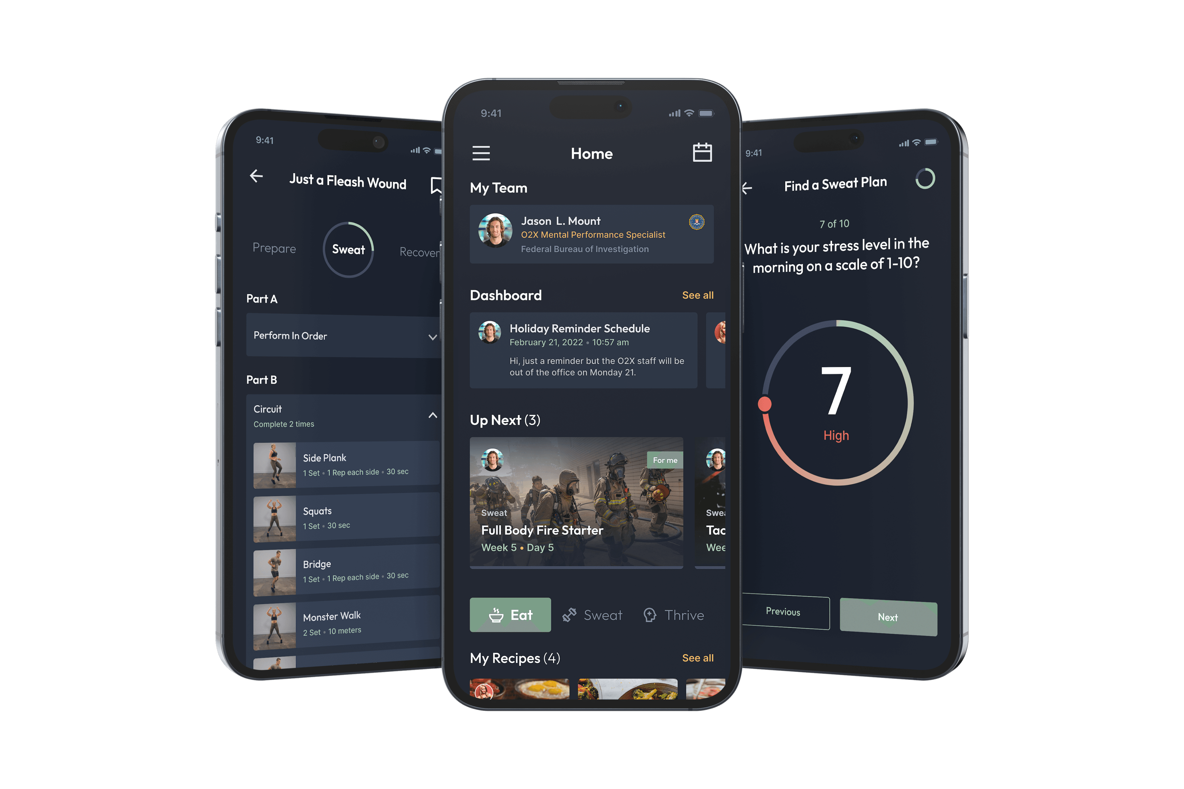 The O2X Human Performance app is a tool that helps continue the education and deliver the O2X Human Performance programs to our users. The mobile app provides a vehicle for tactical athletes to obtain elite human performance programs in their pocket to make them smarter, healthier, and more productive in their work environments.