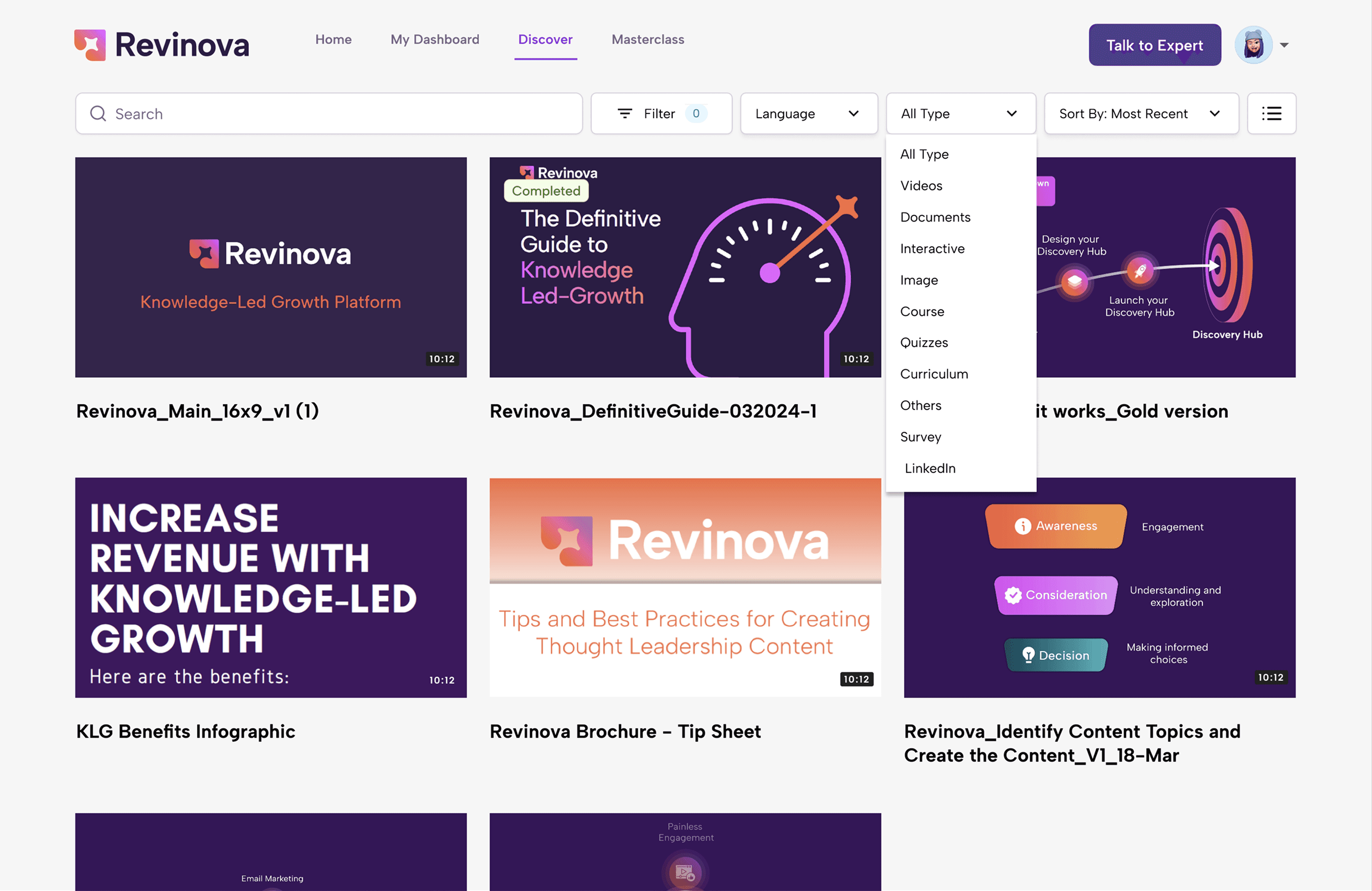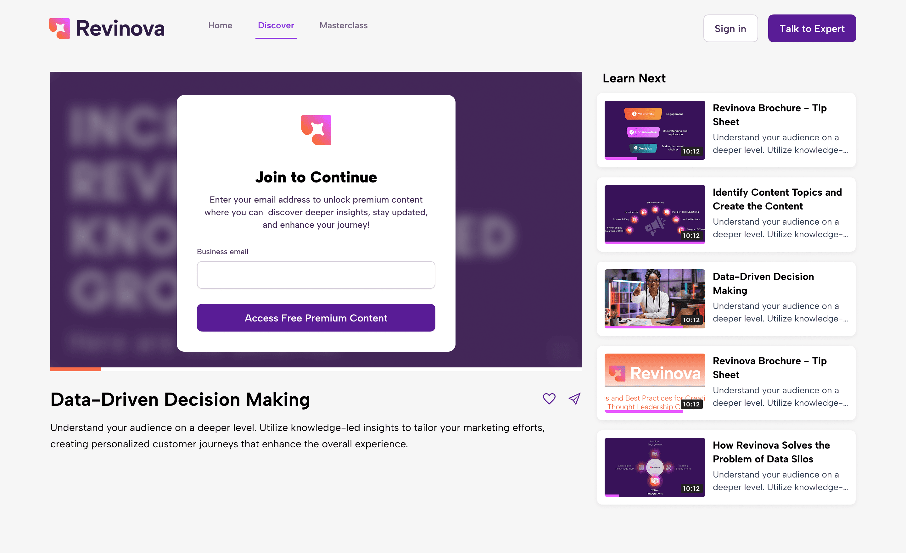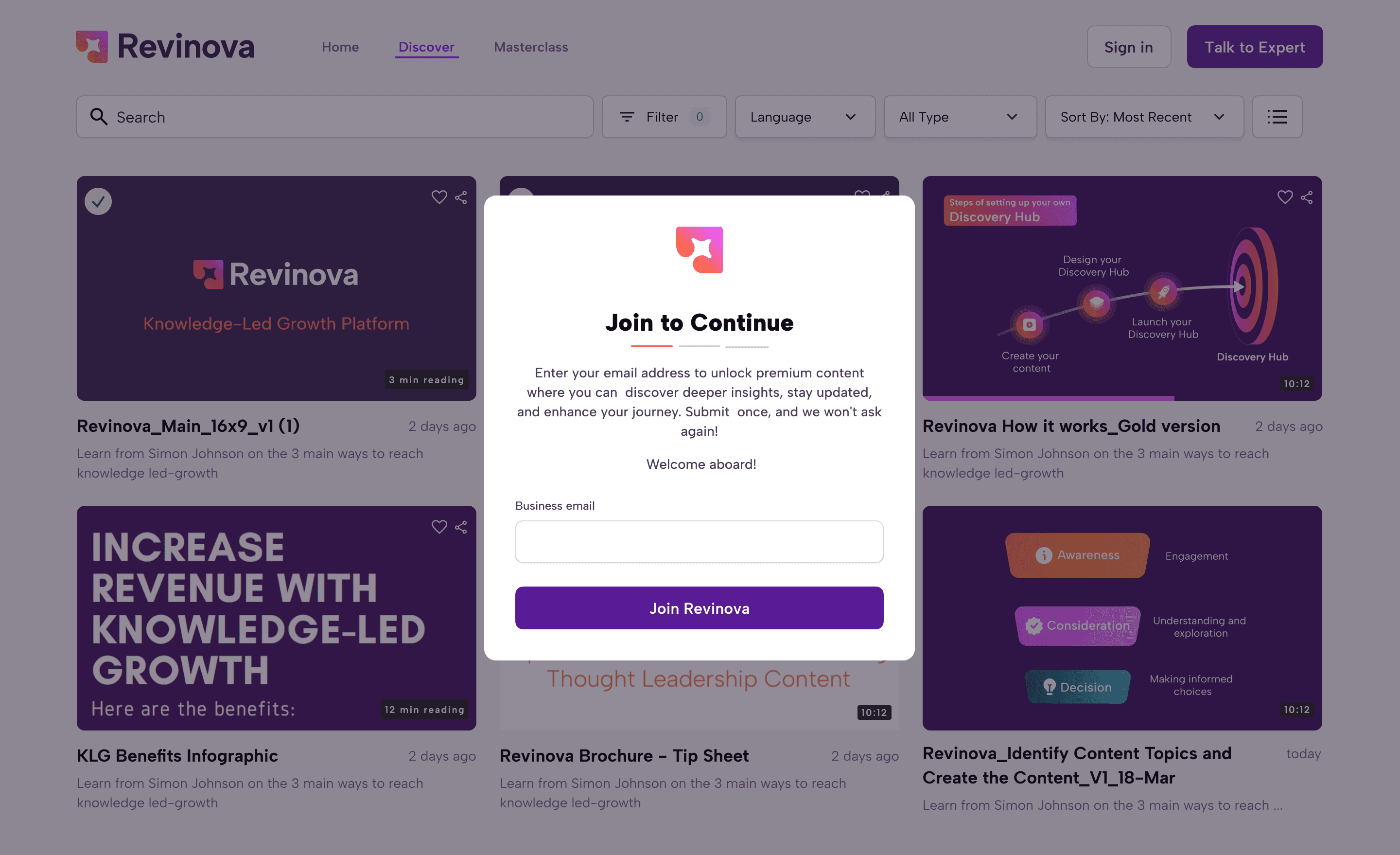 A discovery hub showcases your thought leadership content driving knowledge-led growth.