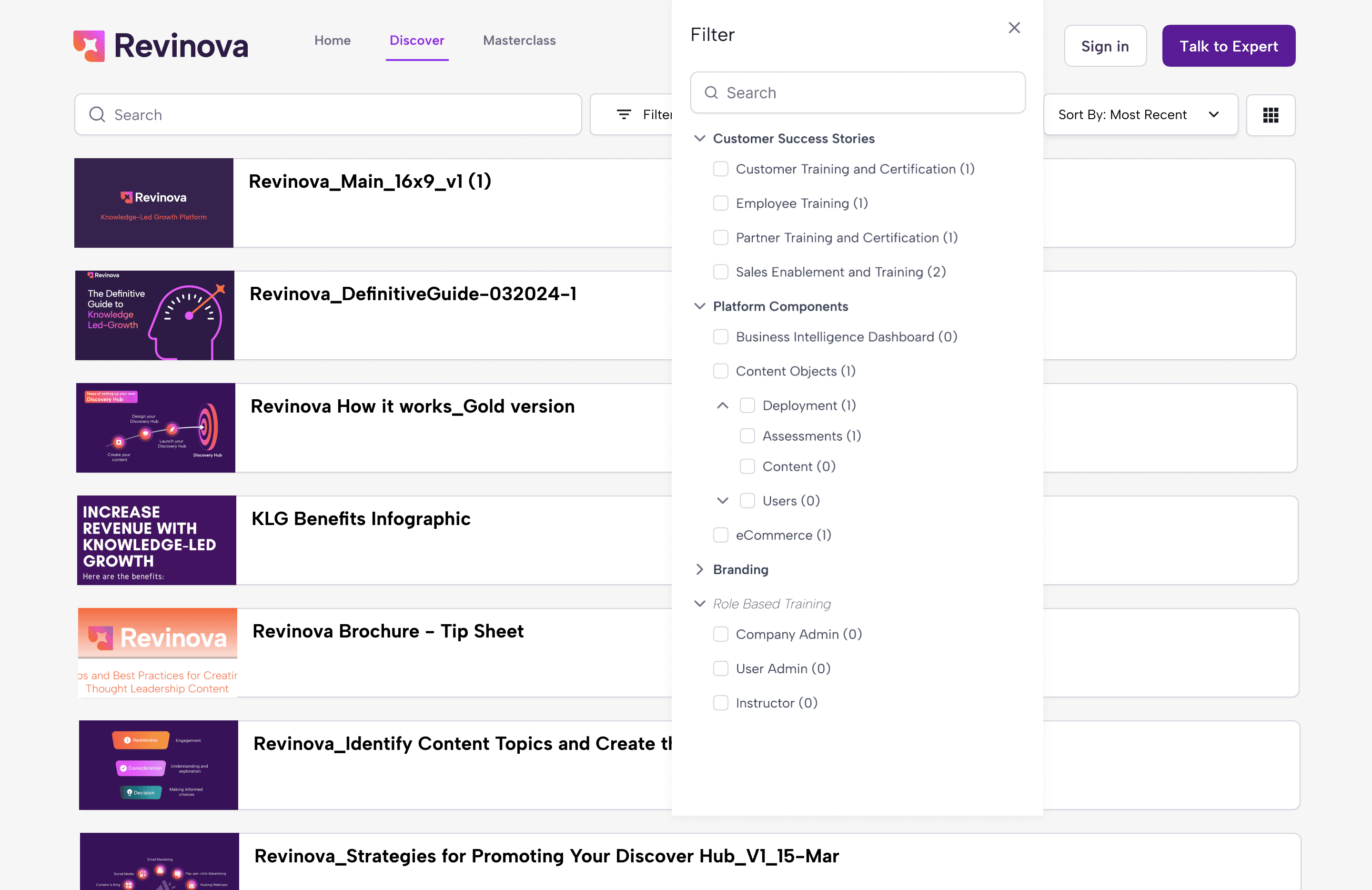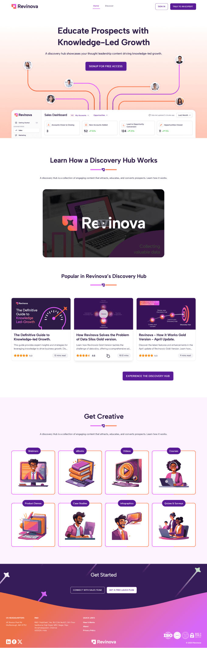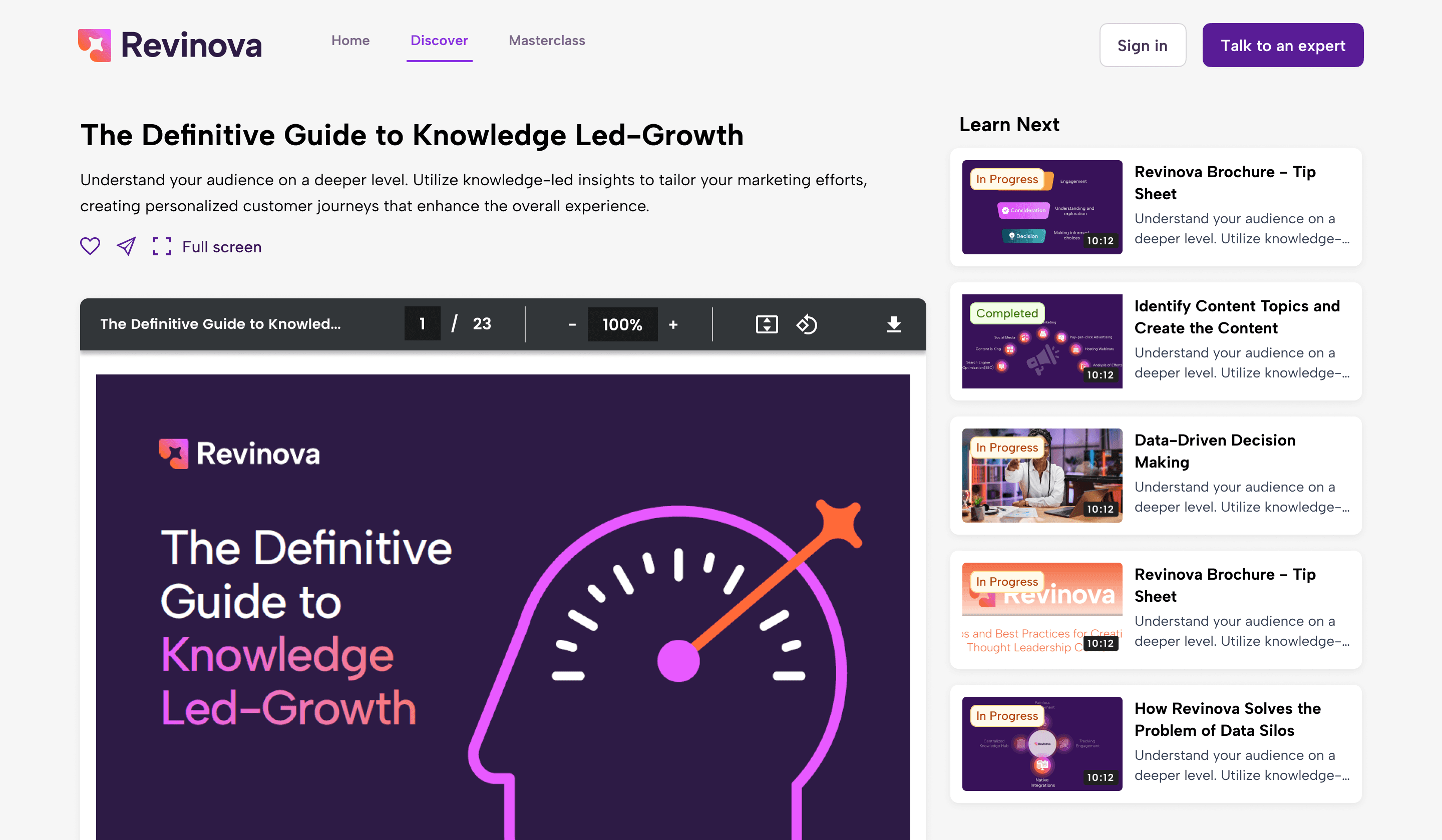 A discovery hub showcases your thought leadership content driving knowledge-led growth.