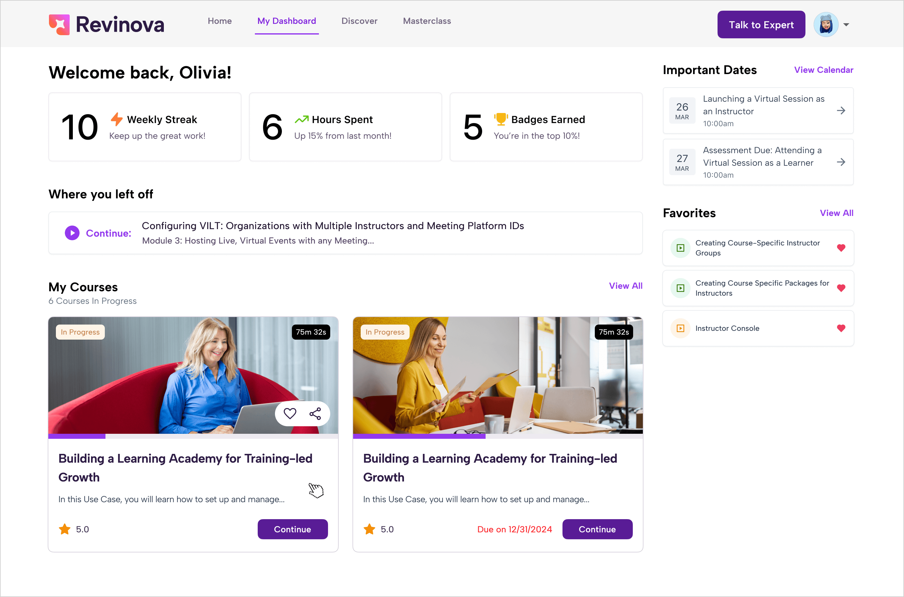 The UX audit led to a more consistent and user-friendly experience across Revinova’s marketing site and web app. Updates to the marketing page improved clarity and positioning, with early signs of increased traffic. In the product, key flows were refined, including free premium access via email signup and course navigation, while visual consistency across spacing, colors, and buttons was standardized. Stakeholder feedback confirmed the changes were well received, resulting in a cleaner, more intuitive interface.
