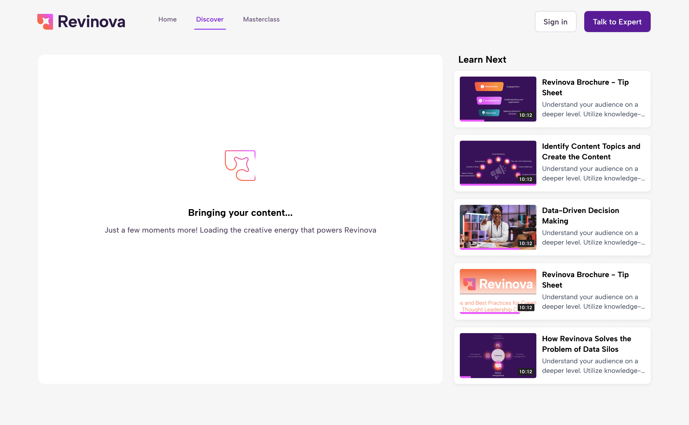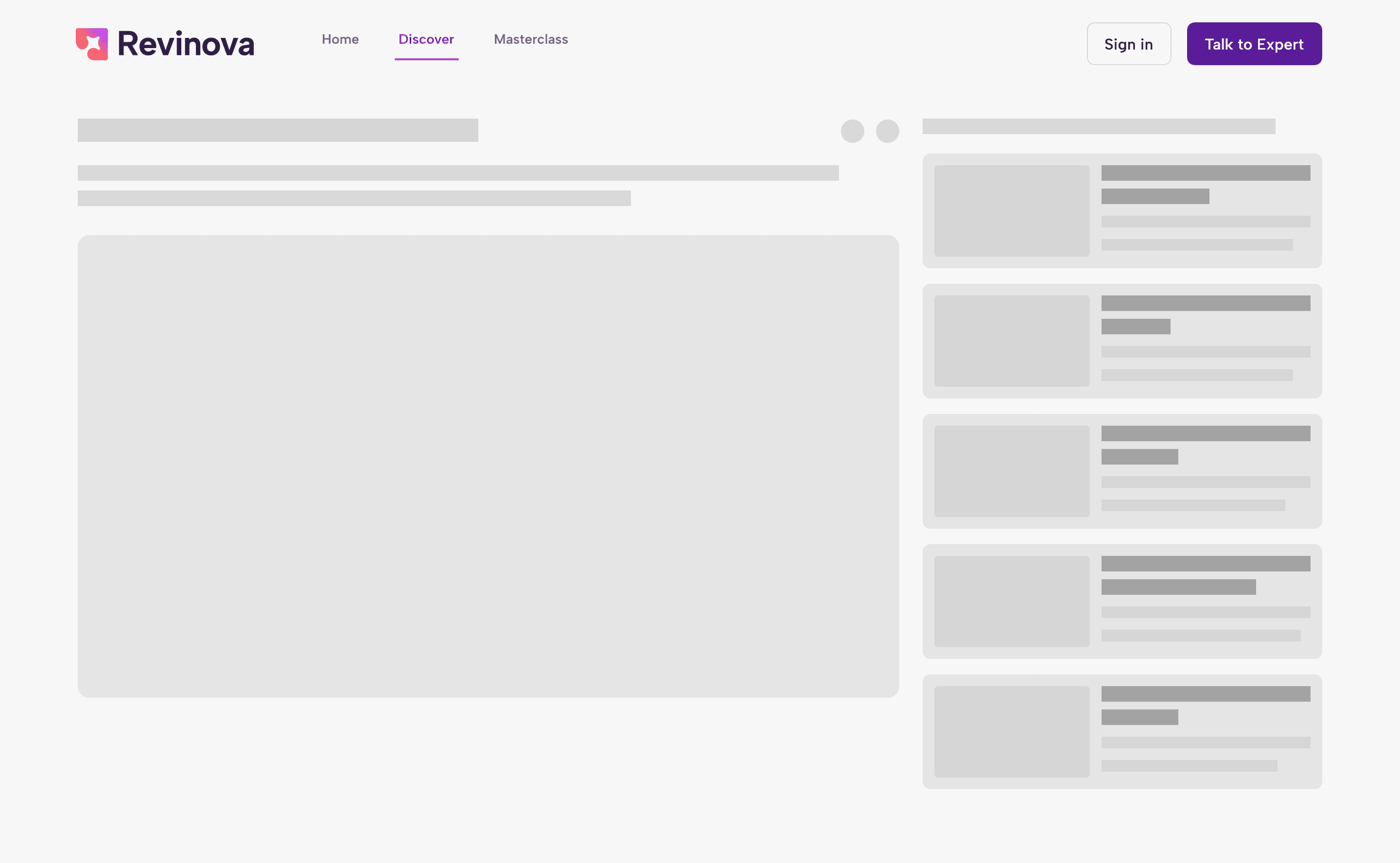 Revinova is a web-based platform that helps users access, explore, and engage with curated content and services through a subscription based model. The product combines free and premium content, requiring clear value communication, smooth onboarding, and intuitive navigation to drive engagement and conversion.